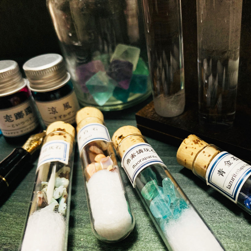 オリジナルインク、天気管、鉱物試験管標本、オリジナルノート、鉱物トレカ